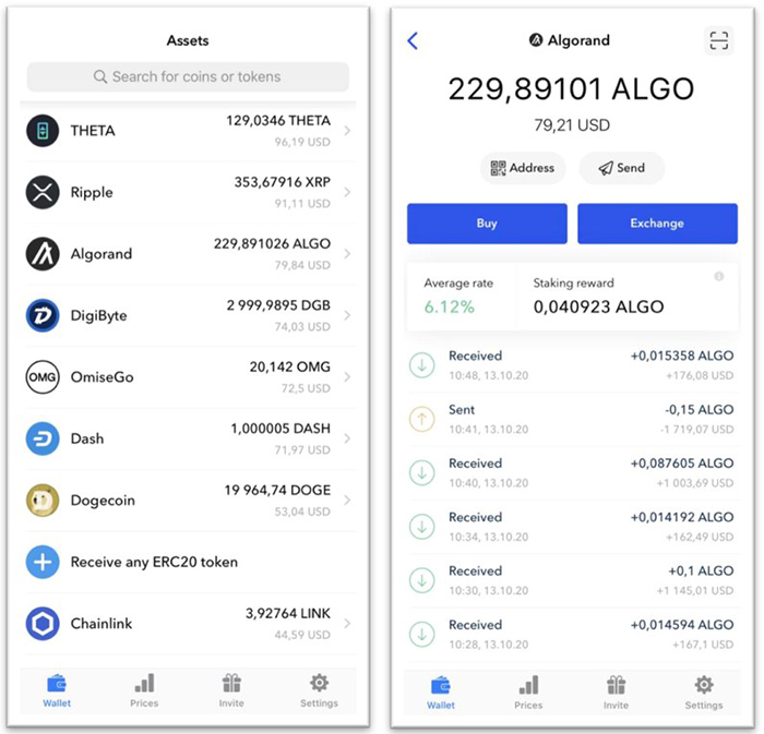 Phần trăm lợi nhuận hàng năm (APY) là lãi suất phản ánh tổng số tiền lãi, trong trường hợp này là phần thưởng đặt cược, được dự đoán sẽ kiếm được trong một năm. Hiện tại, ALGO là 6,12%.