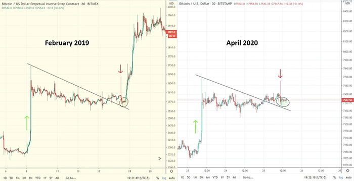 “Tháng 2/2019 đánh dấu bull flag (cờ tăng giá), đảo ngược 14 tháng của thị trường giá giảm. Tháng 4/2020 có vẻ cũng đang thiết lập một sự bùng bổ tương tự.” – @CryptoKaleo