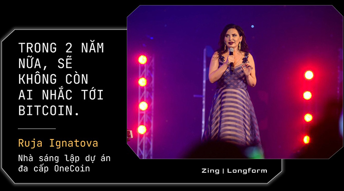 Trên sân khấu đó, người sáng lập dự án nói với đám đông phía dưới rằng OneCoin sẽ sớm trở thành tiền mã hóa lớn nhất thế giới và giúp mọi người ở mọi nơi có thể thanh toán.