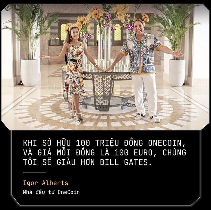 Ở cách xa McAdam gần 1.000 km, một cặp vợ chồng khác hiểu rõ những gì OneCoin có thể mang lại. Igor Alberts và vợ Andreea Cimbala đã kinh doanh đa cấp hàng chục năm. Tới năm 2015, Igor Alberts được mời tới một sự kiện của OneCoin ở Dubai.