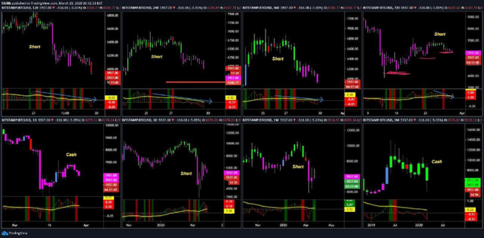 Chỉ báo của ông đang khuyến nghị nên giữ lệnh “short” trong 7 trên 8 khung thời gian này – cho thấy khả năng thị trường tiền điện tử sẽ tiếp tục giảm hơn nữa. Các chỉ báo tương tự cũng khuyên các trader nên short hoặc ít nhất là cash out vào ngày thoái vốn tàn bạo hôm 12/03, thời điểm Bitcoin đã giảm từ $7.700 xuống mức thấp nhất là 3.700 USD.