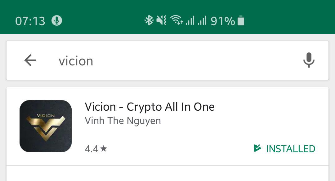 Bạn có thể tìm kiếm thẳng trên PlayStore với từ khóa “Vicion” hoặc “Vicion – Crypto All In One” vì Google xét duyệt ứng dụng khá dễ dàng và nhanh chóng nên Vicion luôn được cập nhật sớm nhất.