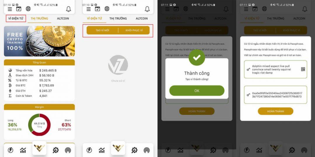 - Bước 2: Click “Tạo ví”