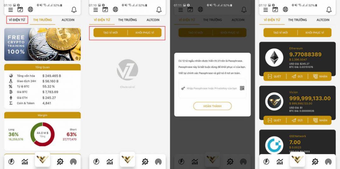 Bước 3: Tạo ví mới hoặc khôi phục ví cũ