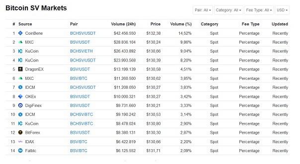 Cho tới nay đã có khá nhiều sàn giao dịch quốc tế đã hỗ trợ giao dịch Bitcoin SV, trong đó phải kể tới những sàn uy tín đang niêm yết đồng tiền này như: KuCoin – Okex – Houbi Global – Poloniex,…. quý vị có thể tham khảo trực tiếp trên Coinmarketcap: