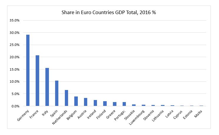 Năm 2016, một mình Đức đóng góp 21% GDP cho EU, trong khi Pháp đóng góp 16%. Chính nhờ các đóng góp đáng kể vào GDP của EU khiến cho Đức và Pháp có vị trí quyền lực chính trị to lớn trong EU. Đồng thời đây cũng là 2 quốc gia sẽ gây ảnh hưởng nhiều nhất tới đồng Euro.