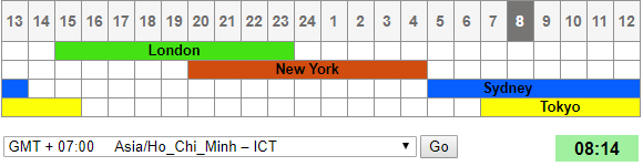 Tính theo GMT thì khung thời gian phù hợp để giao dịch là từ 7 giờ đến 20 giờ tương ứng với 15 giờ đến 4 giờ sáng theo giờ Việt Nam. Rõ ràng, bạn đã thấy trước 7 giờ và sau 20 giờ (giờ GMT) thì trường giao dịch vắng vẻ hơn rất nhiều so với khung giờ ở giữa (7 giờ đến 20 giờ).