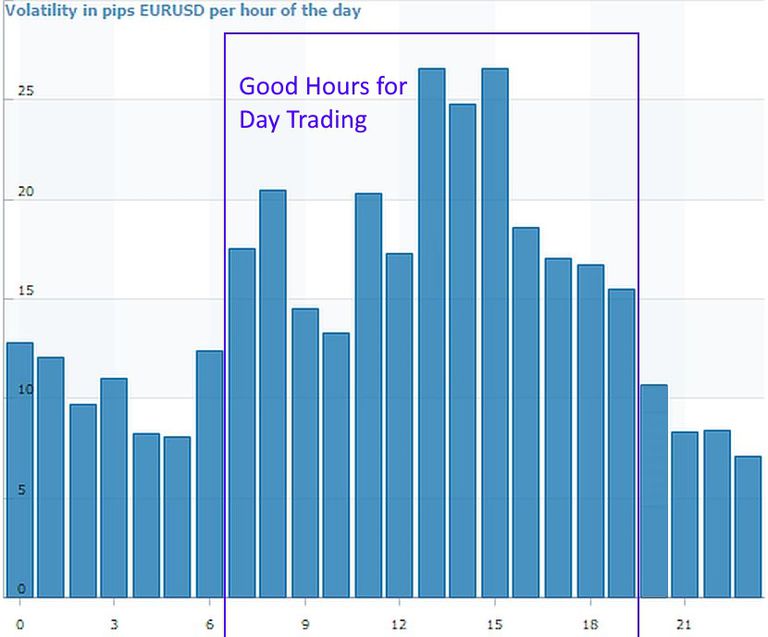 Mức biến động giao dịch còn thay đổi tùy vào từng ngày. Ví dụ, mức trung bình giao động của cặp EURUSD ở thời điểm này vào khoảng 100 pips / ngày. Nhưng có những ngày giá chỉ chạy có 75 pips. Hoặc có những ngày cực kỳ sôi động lên đến 130 pips.