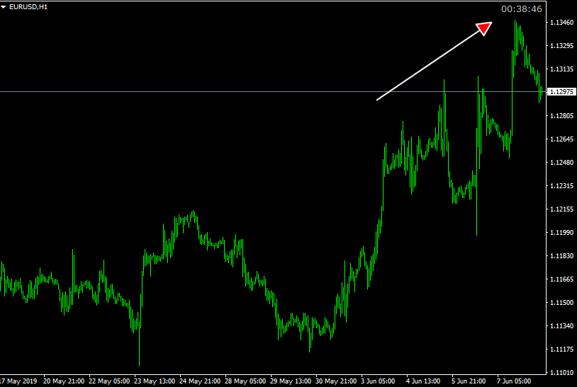 Có thể thấy, khi nhìn vào góc phải màn hình ở biểu đồ trên tại khung H1, bạn sẽ biết cây nến hiện tại sẽ đóng cửa sau gần 39 phút nữa.