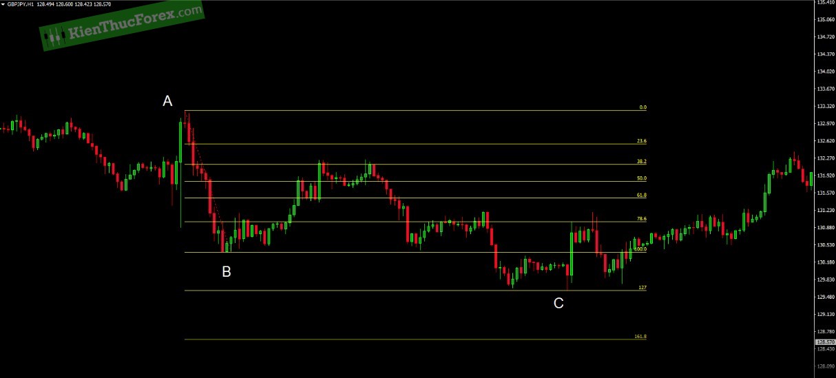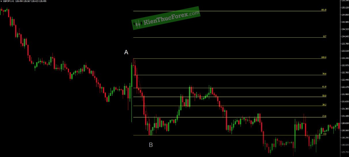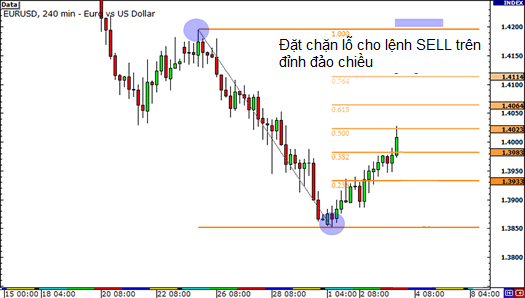 • Bạn vào lệnh ở mức Fibonacci 0.382, bạn sẽ đặt điểm chặn lỗ của mình trên mức 0.500.