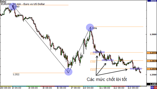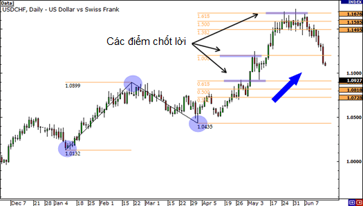 • Ta có thể thấy, các mức 0.618, 1.00 và 1.618 là các điểm chốt lời tốt.
