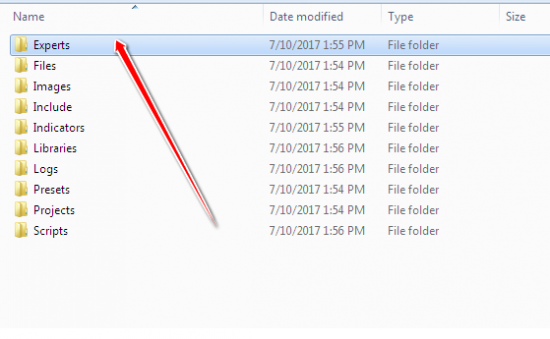 Lưu ý: nếu bạn cài các chỉ báo kỹ thuật bạn sẽ tìm đến thư mục indicator thay vì thư mục Experts nhé.