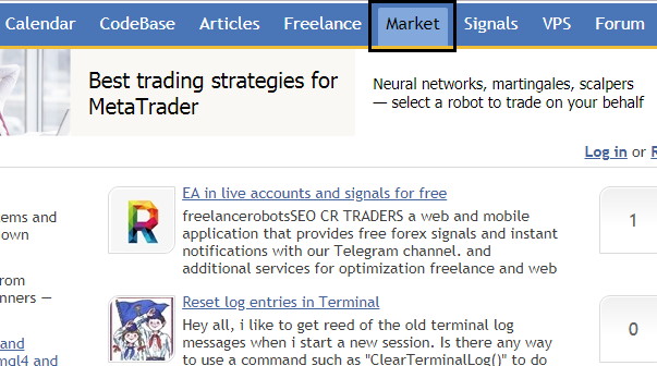 Để mua robot forex tại đây, bạn chỉ cần vào trang chủ tìm đến mục Market: