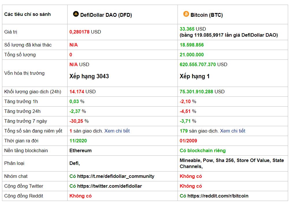 Bảng so sánh sức mạnh của 2 đồng tiền DefiDollar DAO và Bitcoin, giúp bạn xác định giá trị tiềm năng của đồng tiền DefiDollar DAO trong tương lai dựa trên giá trị hiện tại của Bitcoin và ngược lại.