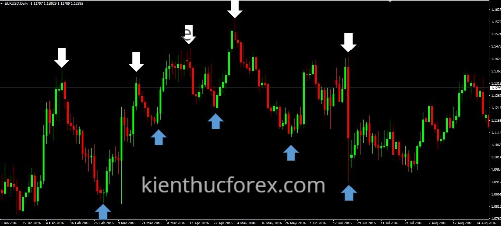 Cũng với ví dụ dưới ta xem xét cặp EURUSD khung Daily.