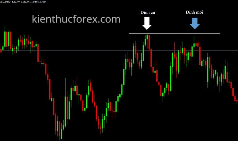 Cách 1: Xác định đỉnh, đáy dựa theo các đỉnh, đáy cũ đã được hình thành.