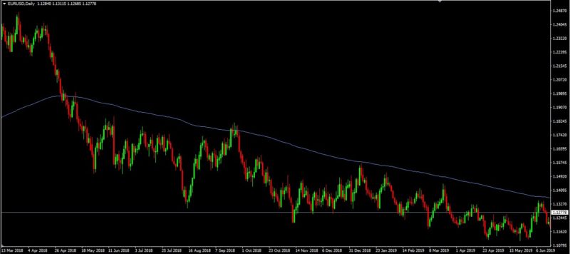 Nếu như đường EMA nằm phẳng và chỉ nhúc nhích đôi chút, nó đang cho thấy thị trường không có xu hướng. Đừng cố gắng giao dịch bằng cách sử dụng phương pháp theo sau xu hướng.