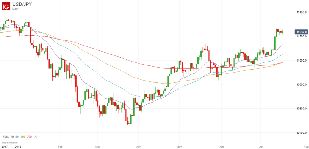 Khi đường EMA dốc lên, tốt hơn hết là giao dịch theo phía mua, và khi nó dốc xuống, chỉ nên giao dịch ở phía bán.