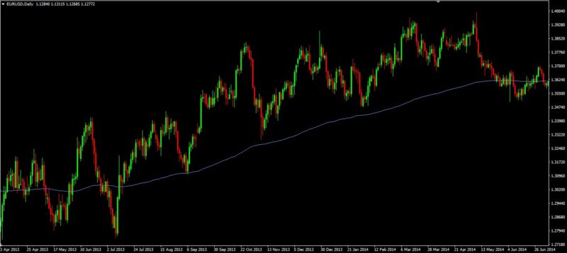 Nếu như  đường EMA tăng lên, chỉ nên giao dịch ở phía mua. Mua khi giá giảm xuống gần chạm vào đường trung bình di động.