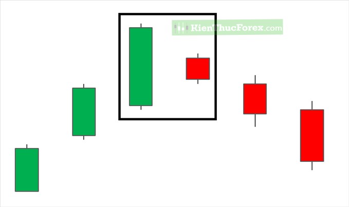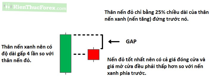 - Nến giảm thứ 2 phải nằm gọn trong phần thân của cây nến tăng trước đó, tốt nhất là nên nằm ở giữa.