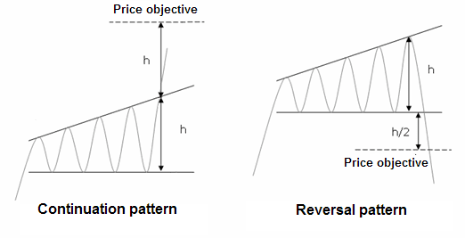 Đối với mục tiêu giá, độ cao của mô hình RBA hay RBD được cộng vào giá phá vỡ phía trên đường kháng cự hoặc xuống dưới đường hỗ trợ để tìm ra một mức giá mục tiêu. Tuy nhiên, Bulkowski (2008) đưa ra một công thức tính chính xác hơn dựa vào các nghiên cứu biểu đồ của ông như sau: