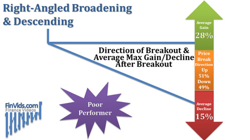 Broadening Right Angle (Góc Phải Mở Rộng) có hình dáng giống với mô hình Triangle (Tam Giác) nhưng xoay theo chiều ngược lại. Mẫu hình này có thể là mẫu hình tiếp diễn, cũng có thể là đảo chiều.