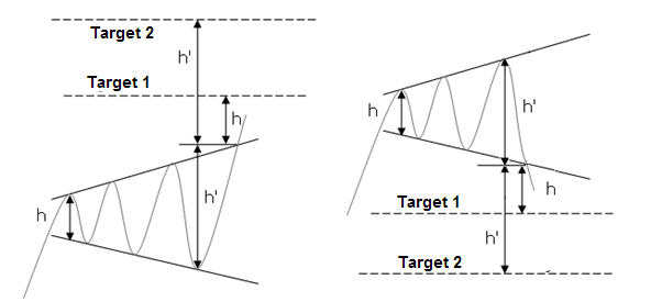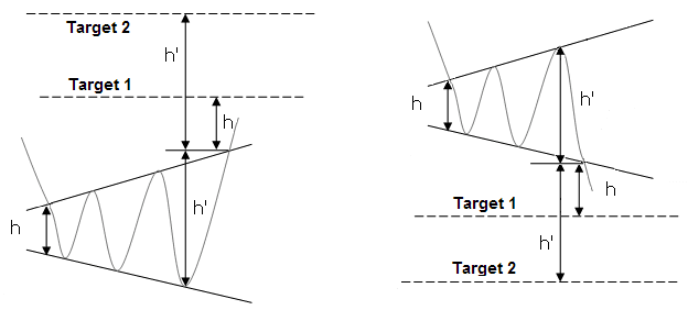 Sau khi Broadening Top phá ra khỏi đường hỗ trợ hoặc kháng cự, mục tiêu di chuyển của giá thông thường chính bằng chiều cao của mô hình.