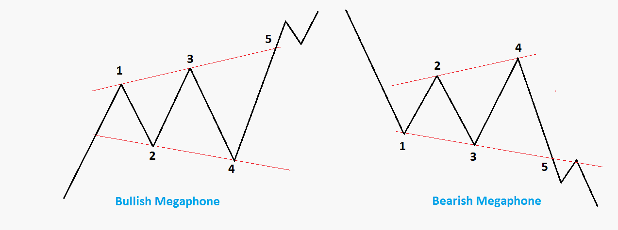 Broadening Top (Đỉnh mở rộng) và Broadening Bottom (Đáy mở rộng) là hai mô hình tương tự nhau, được tạo ra khi giá di chuyển trong một phạm vi ngày càng rộng, liên tục tạo ra những đỉnh cao hơn và những đáy thấp hơn.