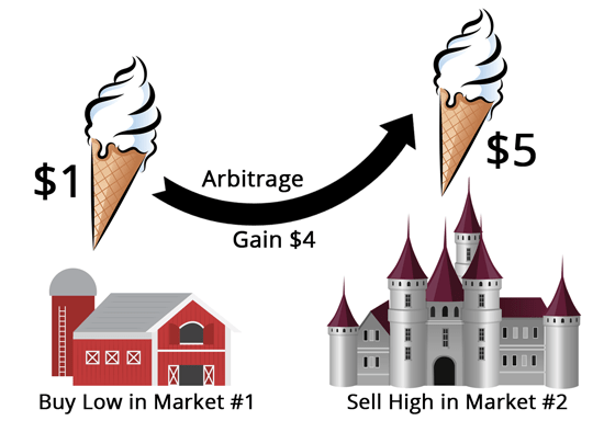 Arbitrage – kinh doanh chênh lệch giá thường được giới trader gọi bằng 1 cái tên vô cùng ngắn gọn là ác-bít hay đảo hối. Về cơ bản giao dịch Arbitrage chính là hình thức kiếm lợi nhuận từ sự chênh lệch,khi thấy giá của sản phẩm A ở thị trường này thấp hơn, bạn mua vào và bạn sẽ bán chúng (sản phẩm A) ra một thị trường khác với mức giá cao hơn.