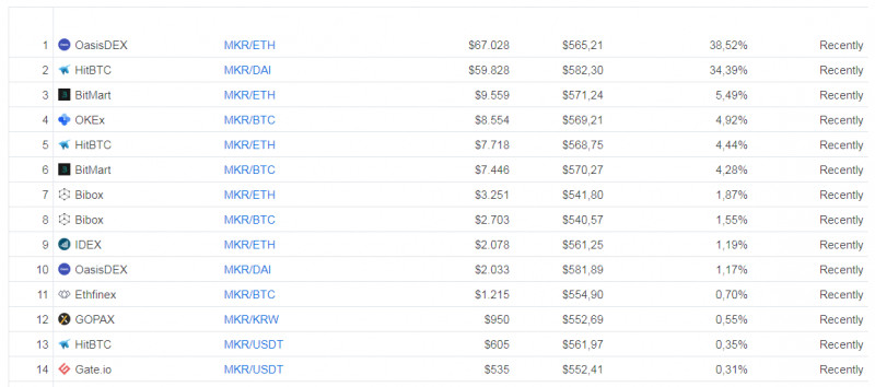 Hiện tại đồng MKR Token đang được giao dịch chủ yếu ở các sàn: OKEx, KuCoin, Bibox, Gate, Kyber…