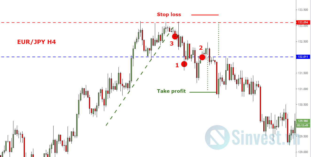 Ví dụ về cặp EUR/JPY khung H4 này bạn có thể vào lệnh theo cả 3 cách. Mặc dù “diễn biến” giá khá kịch tính nhưng vẫn là một “happy ending” dành cho bạn.