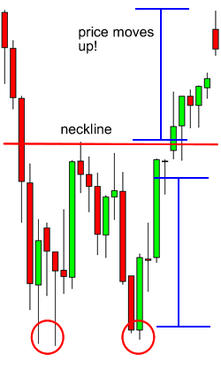Trong đồ thị trên, bạn thấy mức giá tăng cũng xấp xỉ bằng với chiều cao tính từ đường cổ neckline đến hai đáy.