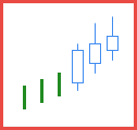 Cả 3 cây nến đều là nến tăng màu trắng, chân nến sau nằm dưới giá mở cửa nến trước, thân nến lần lượt nhỏ dần đi, tạo thành một chuỗi khối kết nối với nhau hướng lên trên. Bên cạnh đó, cây nến số 3 có bóng nến dài hướng lên trên.