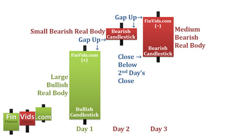 - Nến thứ hai xuất hiện sau một khoảng trống tăng (gap tăng) và là một nến giảm