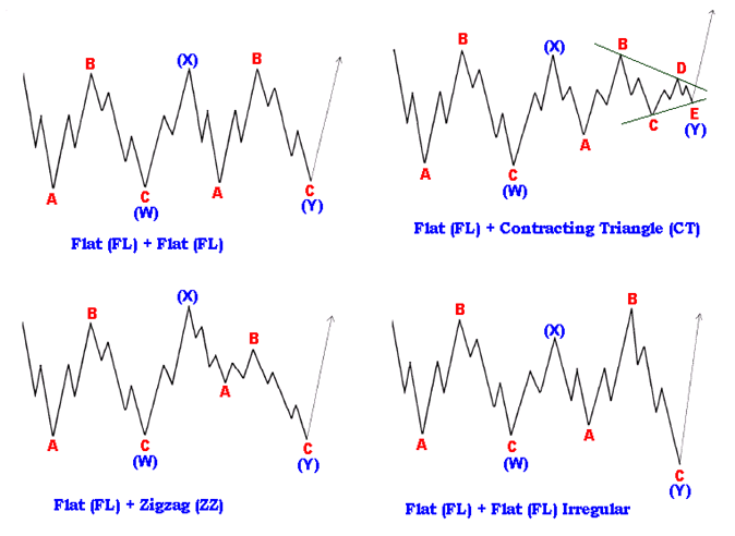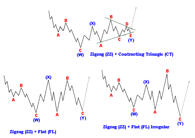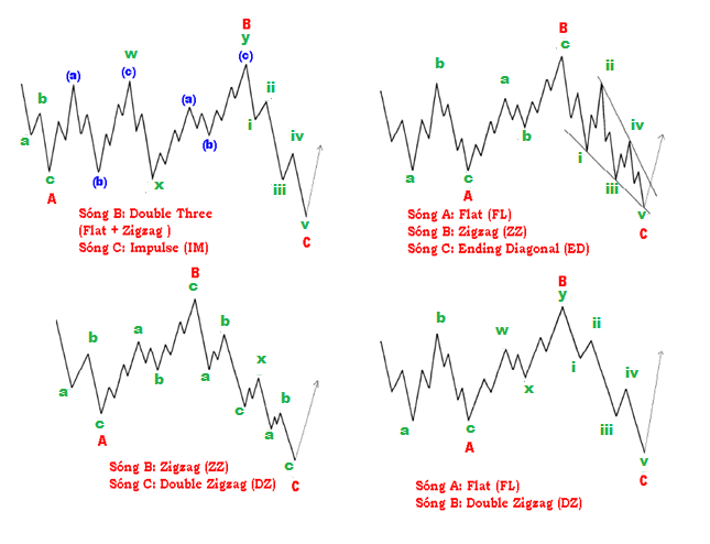 Sóng (W) là các dạng Flat (FL) trong khi sóng (Y) là các dạng Flat (FL), Zigzag (ZZ) hoặc Triangle (Contracting, Expanding):