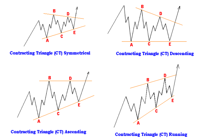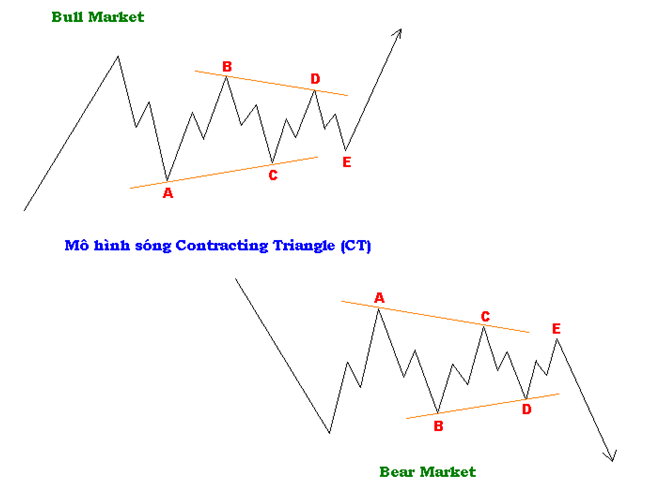 Mô hình Contracting Triangle (CT) khá phổ biến. Trong mô hình này thì 2 đường kênh giá AC, BD hội tụ dần.