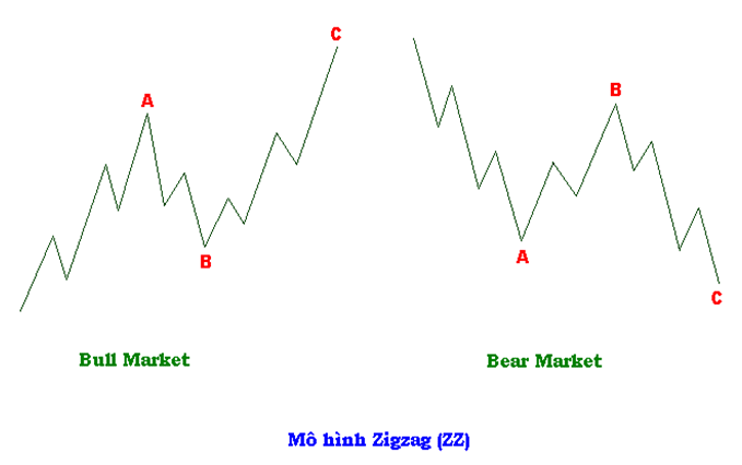 Mô hình sóng Zigzag (ZZ) có cấu trúc 3 sóng được đánh dấu A-B-C, nhìn chung di chuyển ngược với xu hướng chính. Đây là một trong những mô hình sóng Elliott điều chỉnh phổ biến nhất.