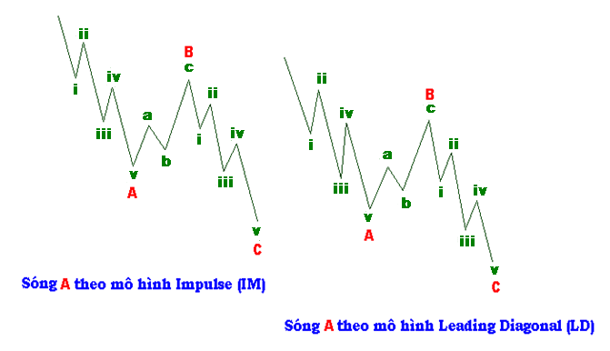 Sóng A phải theo mô hình Impulse (IM) hoặc Leading Diagonal (LD).