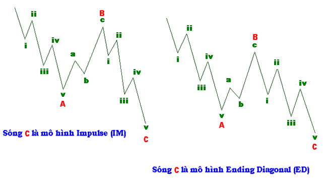 Sóng C có thể là mô hình Ending Diagonal (ED) nếu sóng A là mô hình Leading Diagonal (LD).