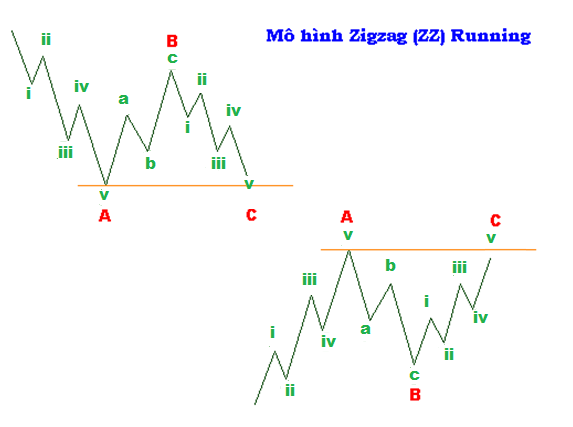 Với mô hình Zigzag Running thì điểm cuối của sóng C không vượt qua điểm cuối của sóng A.