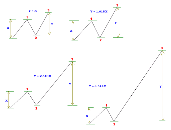 Nó cũng có thể có thể bằng 38.2% hoặc 61.8% chiều dài tổng của cả sóng 1 và sóng 3 cộng lại (từ chân sóng 1 lên đỉnh sóng 3).