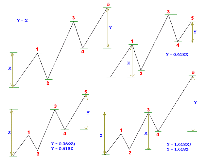 Sóng 5 thường bằng với sóng 1 hoặc đi một khoảng cách 61.8% chiều dài sóng 1.