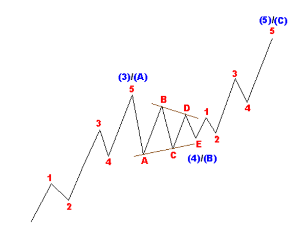 Khi sóng A là một phần của mô hình Contracting Triangle (CT), sóng (B) hoặc sóng (4) thì nó thường hồi lại 38.2% của cả 5 sóng trước đó và đi vào phạm vi sóng thứ 4 của 5 sóng này.