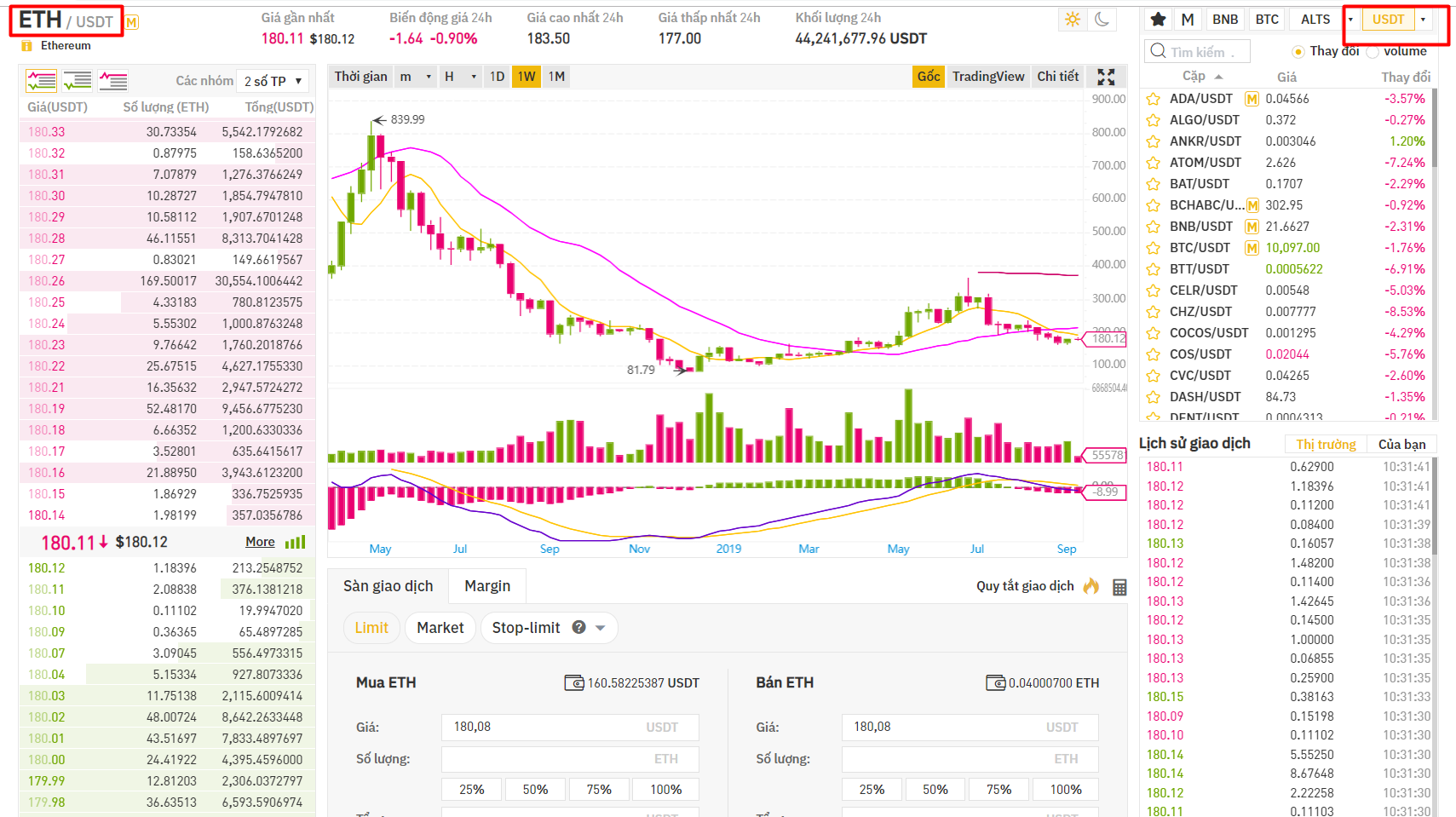 Trang mua bán Ethereum sàn Binance: https://www.binance.com/vn/trade/ETH_USDT