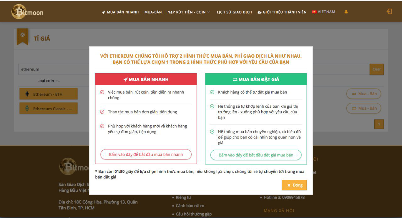 Bước 2: Nạp VNĐ vào tài khoản Bitmoon để mua Ethereum