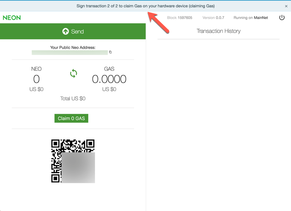 - Khi bạn nhận GAS hay thực hiện bất kỳ giao dịch gửi NEO hoặc GAS đều được yêu cầu uỷ quyền thực hiện thông qua Ledger Nano S. Tính năng này dùng để đảm bảo an toàn cho NEO và GAS của bạn.