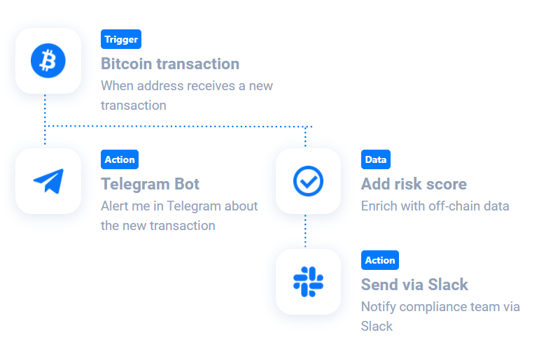 Giám sát bất kỳ hoạt động nào. Dễ dàng tạo kết nối tự động hóa giữa các blockchains và ứng dụng bằng Trình hướng dẫn giám sát nhanh