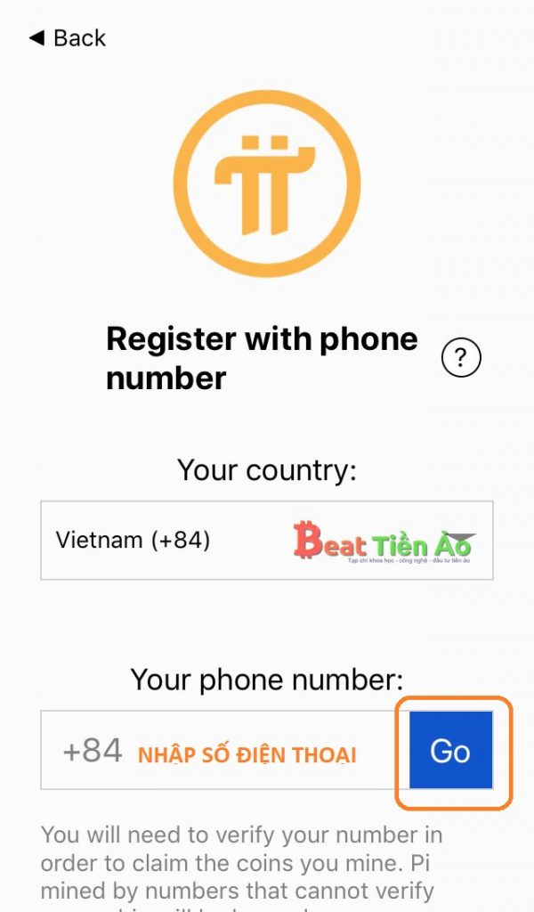 - Nhập số điện thoại và nhấn Go