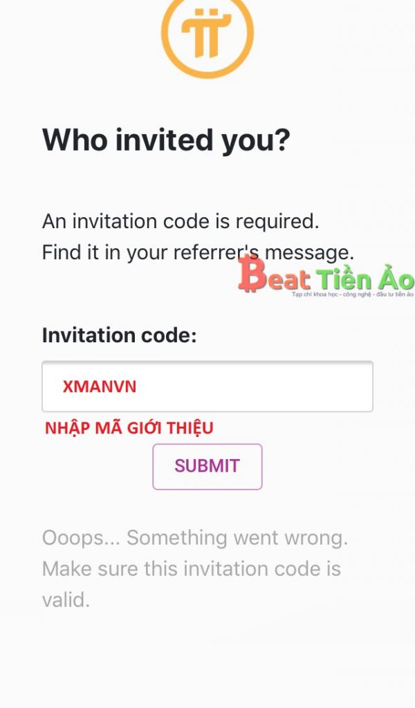 - Nhập Username người giới thiệu (reviewinvest) và nhấn Submit