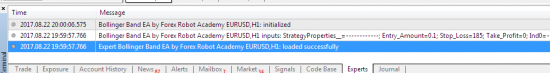 Tất cả các hoạt động của expert advisor và các lỗi đều được hiển thị trong tab “Experts” và “Journal” ở cửa sổ Terminal MetaTrader. Ngoài ra, tất cả các thông báo này đều được gửi vào MT4 log files bạn có thể truy cập bất cứ lúc nào.
